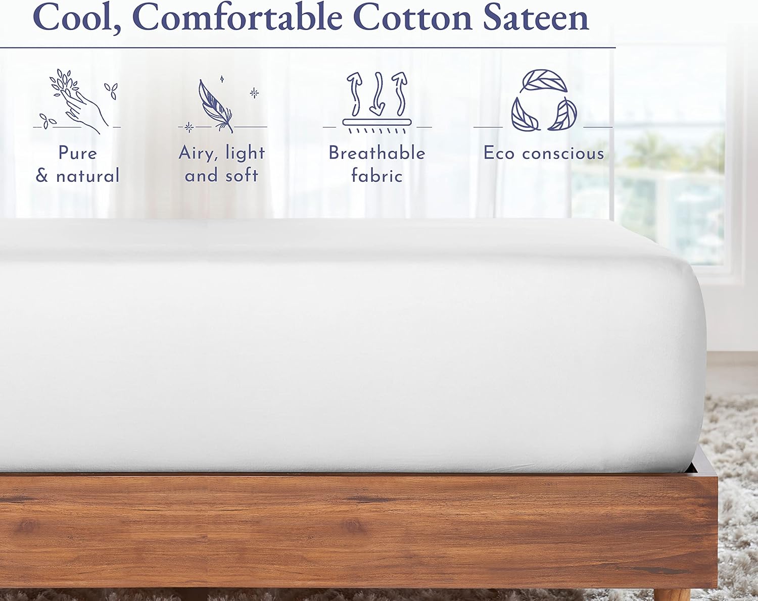 King Size Deep Fitted Sheet Only - Soft 100% Cotton Bed Sheets, Sateen, No-Pop Off Elastic (King, White)