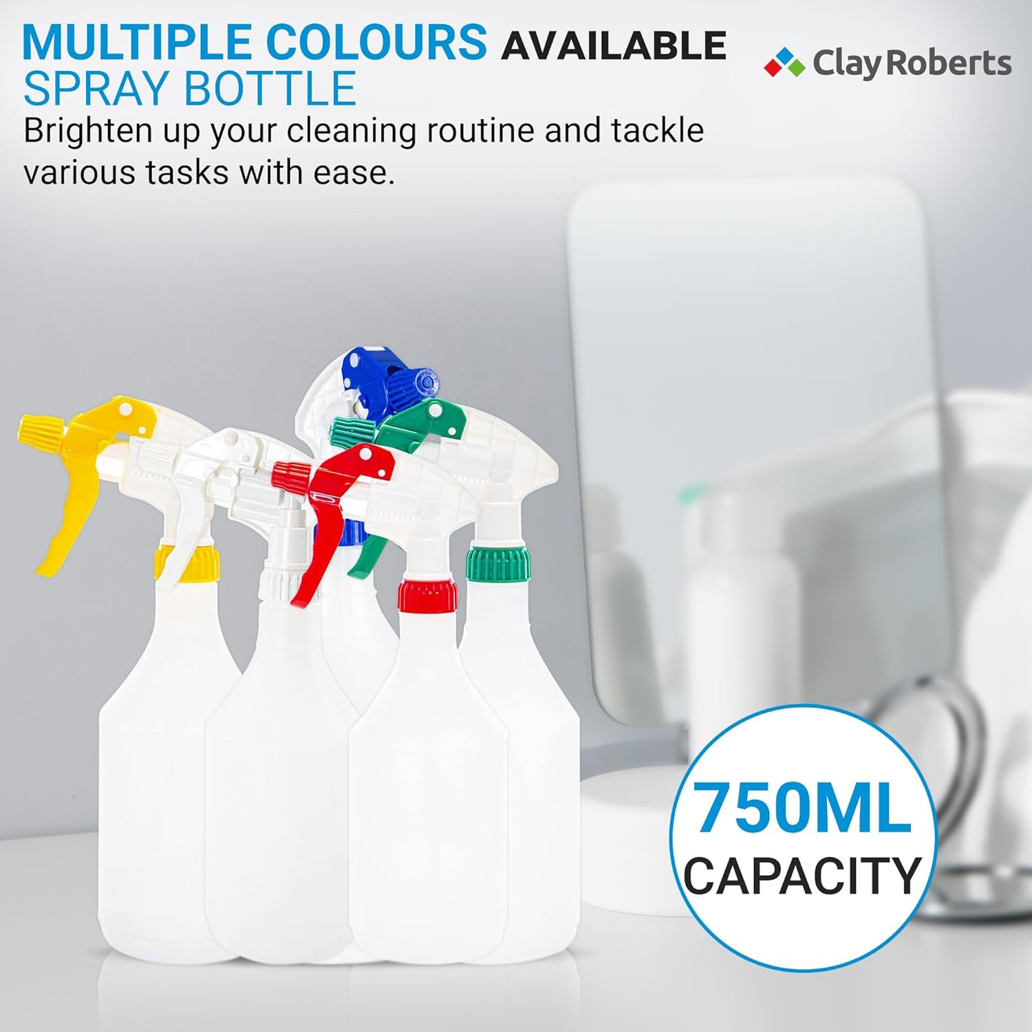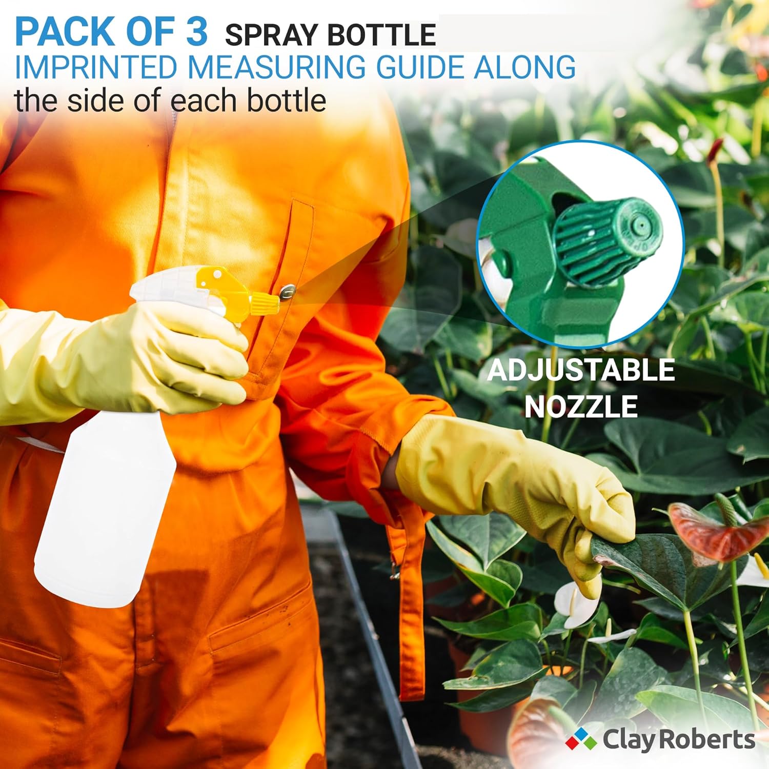 Clay Roberts Water Spray Bottles, Mist and Jet Settings, Pack of 3, Blue, 750ml, Measuring Gauge, Blue Spray Bottles, Cleaning, Gardening, Sprayer Bottle, Water for Cleaning