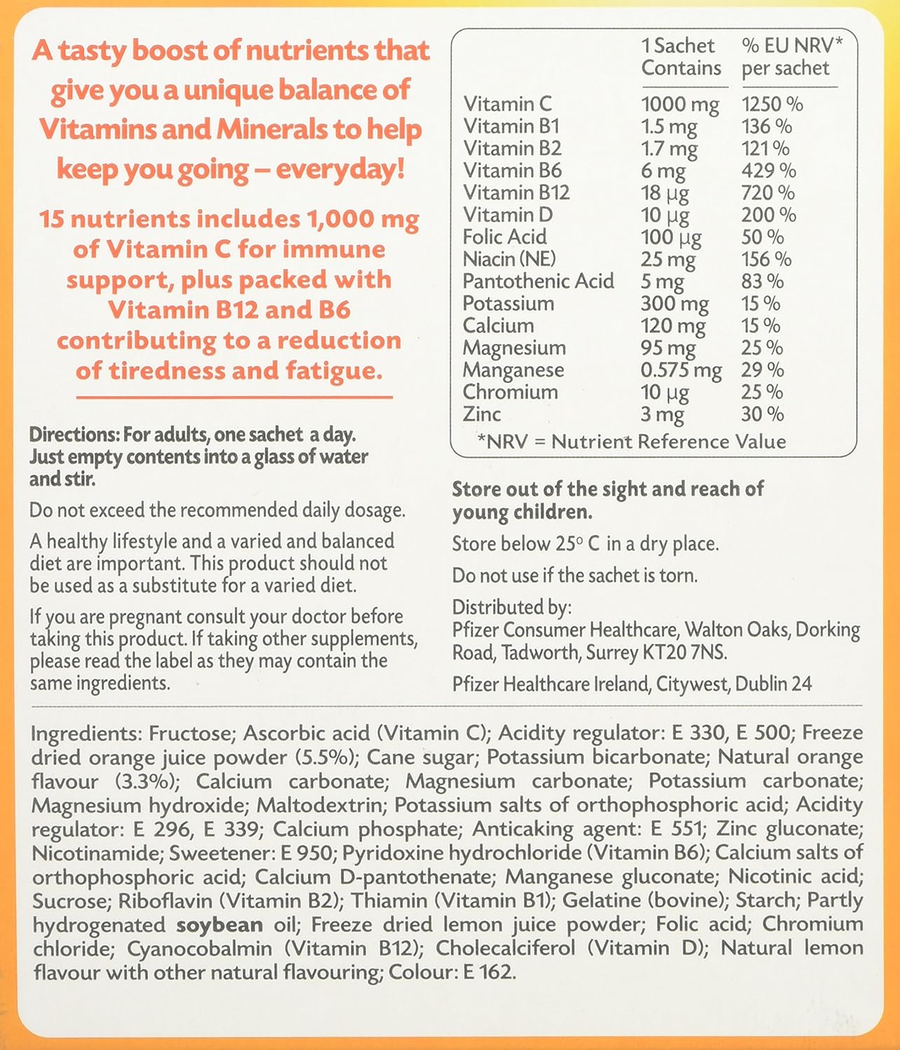 - Emergen-C Energy release and Immunity support. Food Supplement with 1,000mg of Vitamin C, multimineral for adults, with sugars and sweetners