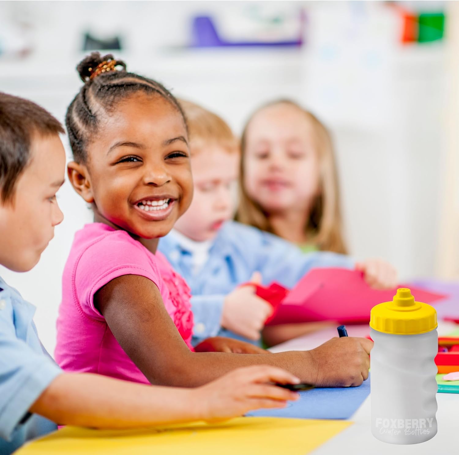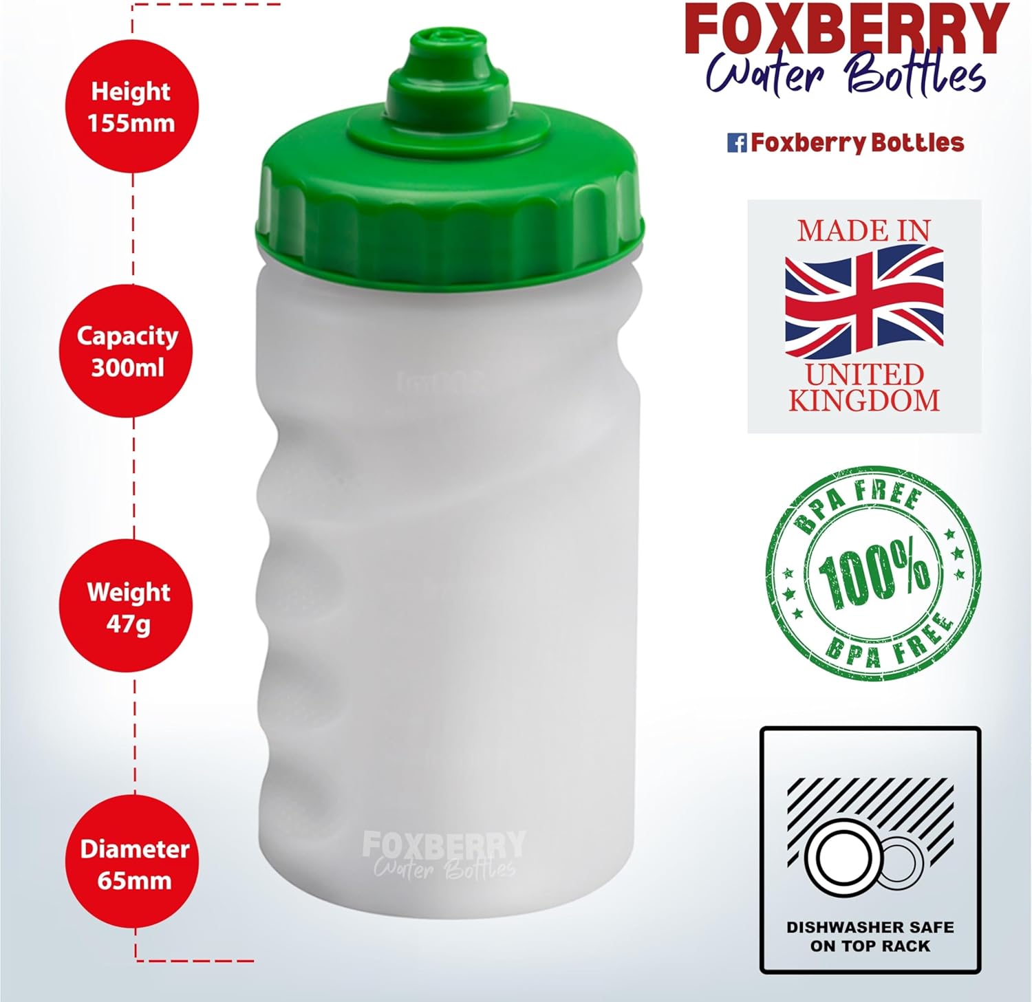 300ml Children's Small Reusable Water Bottles - 4 Pack - Hands Free Lid - Spill Proof - Leakproof Spout - BPA Free - Dishwasher Safe - Sports - School - Clubs (Green Yellow Red Blue)
