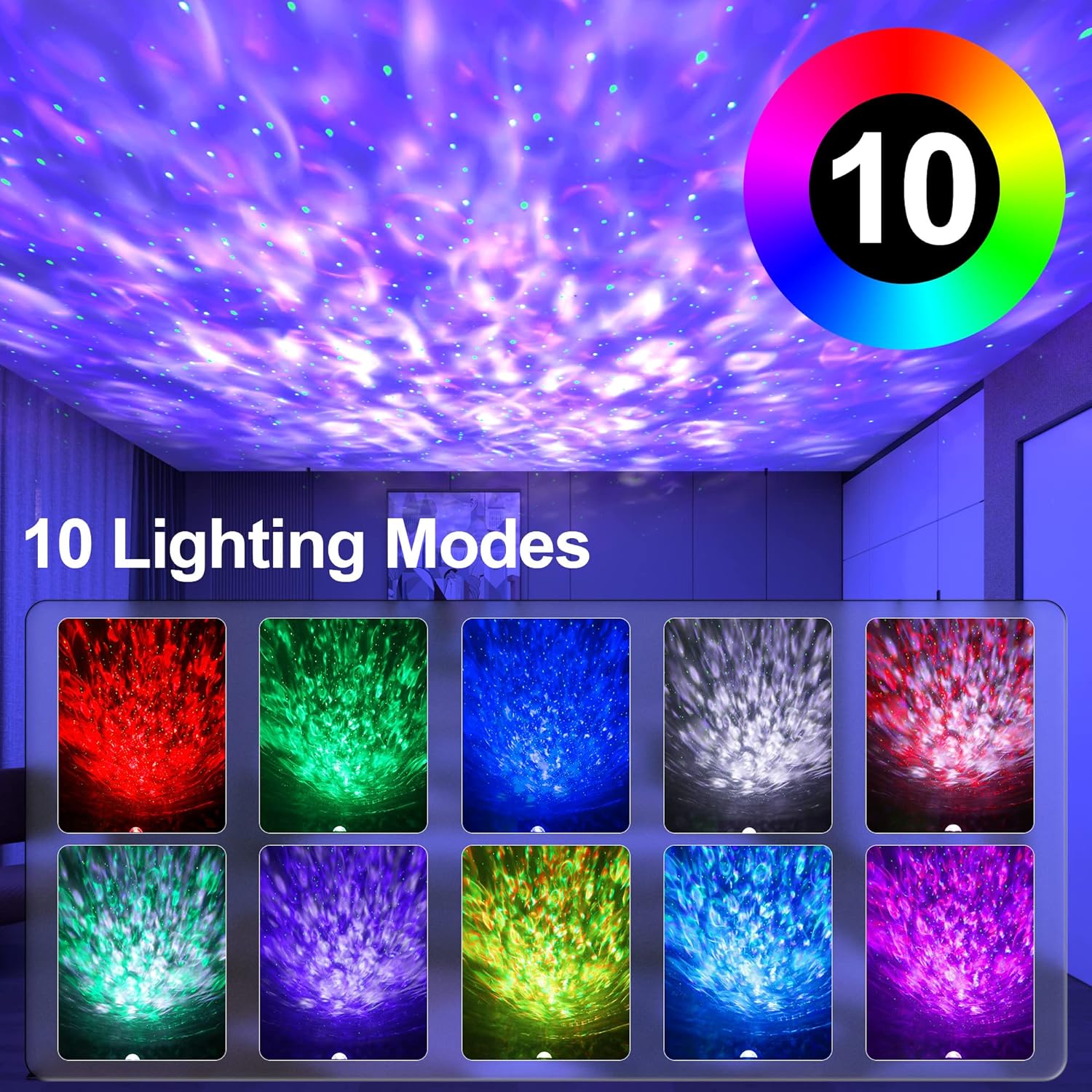 - 【Mysterious Galaxy Projector Light】The Galaxy Projector Light with 10 colors create colorful starry sky lights in your home. It can also create romantic and magical atmosphere that makes you and your children feel relaxed and comfortable.