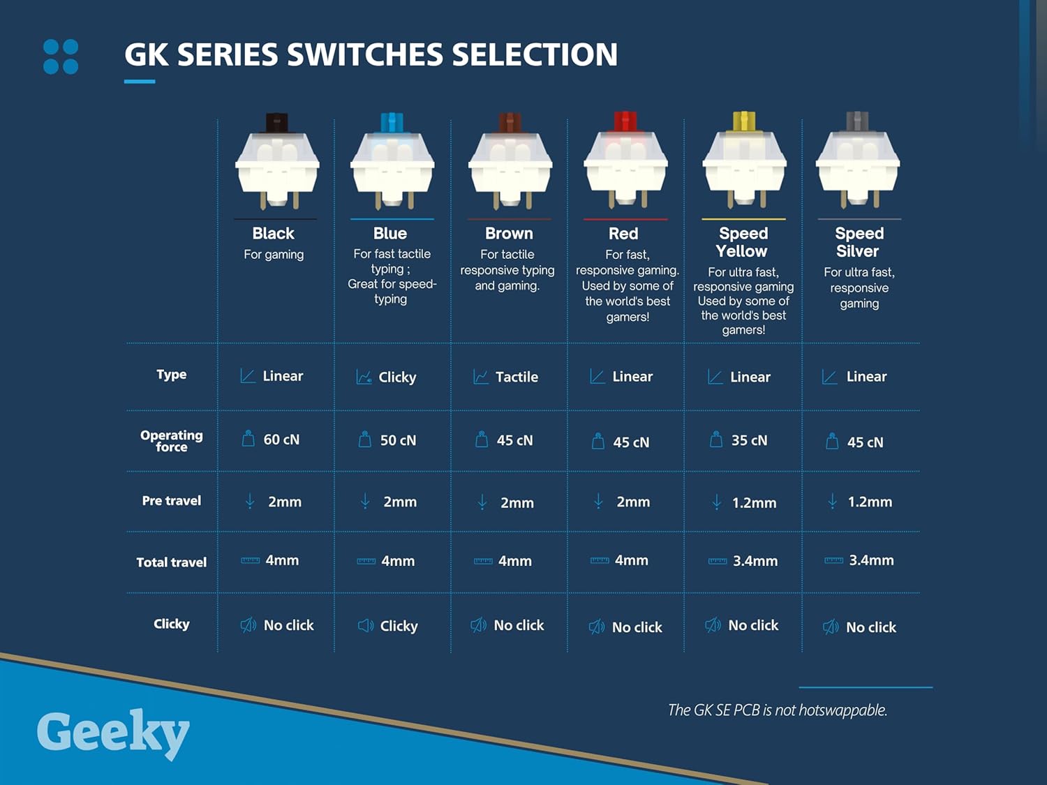 - ⏩ DURABLE MECHANICAL SWITCHES The GK65SE is fitted with high-quality, soldered mechanical switches for ultimate reliability and performance, engineered for long-term intensive use.