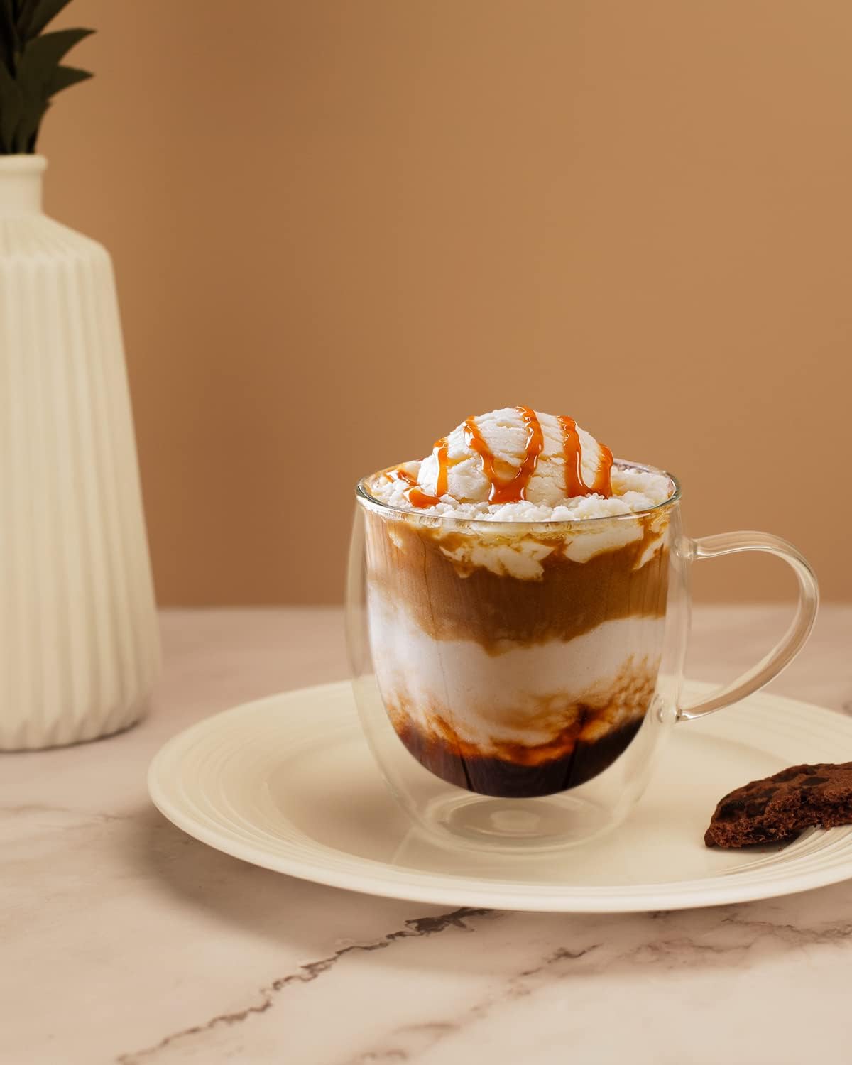 - ☕☕FOOD-GRADE BOROSILICATE GLASS - The cappuccino latte cup 250 ml is made of heat and condensation-resistant borosilicate glass, accept temperature from -30℃ to 150℃, and are very robust than other normal glass mugs. TIPS hand wash is recommended.