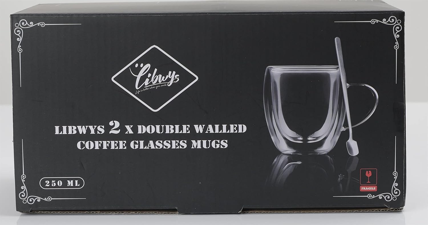 - ☕☕DOUBLE WALLED DESIGN - LIBWYS glass coffee cups are double-walled and have an excellent thermal insulation effect, which helps keep your drinking hotter or colder for longer and also prevents surfaces from becoming too hot (or too cold) to grip.