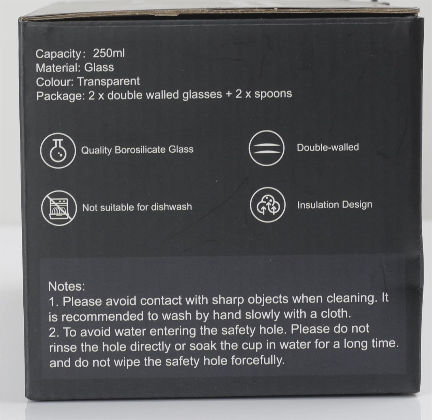 - ☕☕SET OF 2x250ml GLASSES CUPS - Double-walled coffee glasses are designed with an exquisite package and are also a perfect gift choice for Christmas, Valentine's Day, Mother's Day, and housewarmings.