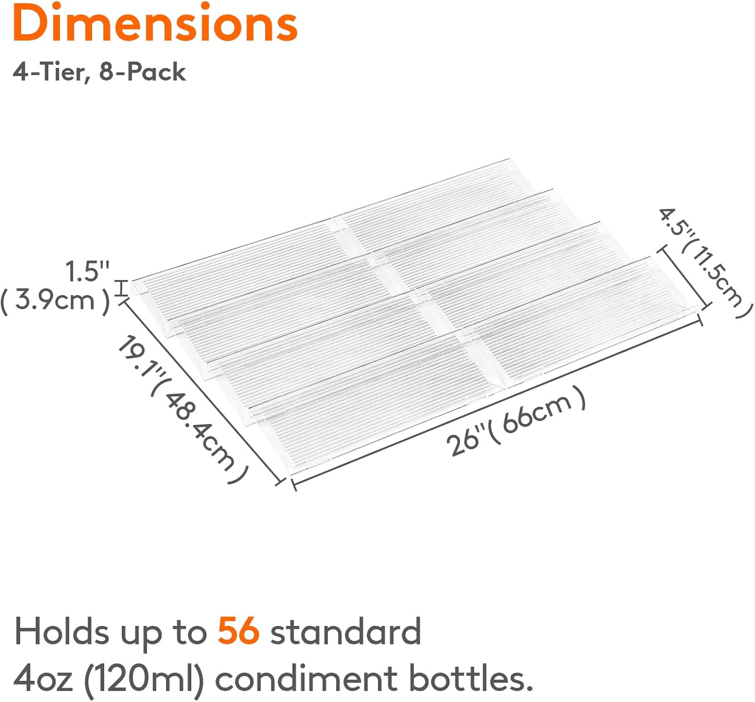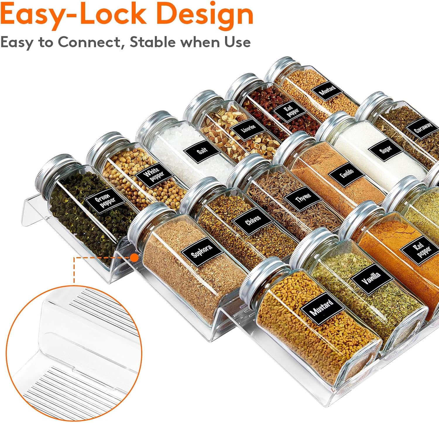 - Easy to Find A set of 4 tiers of spice jar organizer can accommodate 64 standard spice bottles. This inclined design allows you to see the stored spice jars at a glance, and find what you need. Improve space utilization with this drawer storage and organize your kitchen space better.