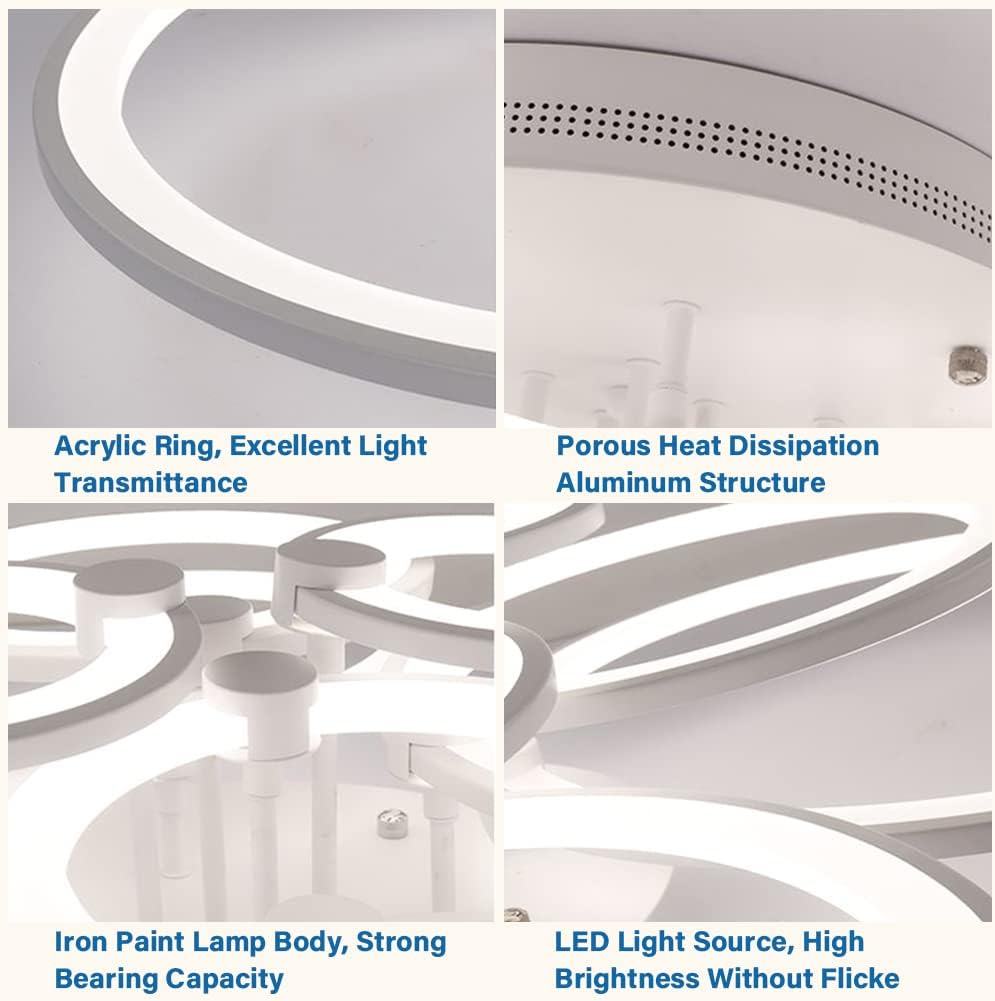 Modern LED Ceiling Light, Flush Mount Lighting Fixture with 4 White Rings, Acrylic Chandelier Lamp for Living Room, Bedroom