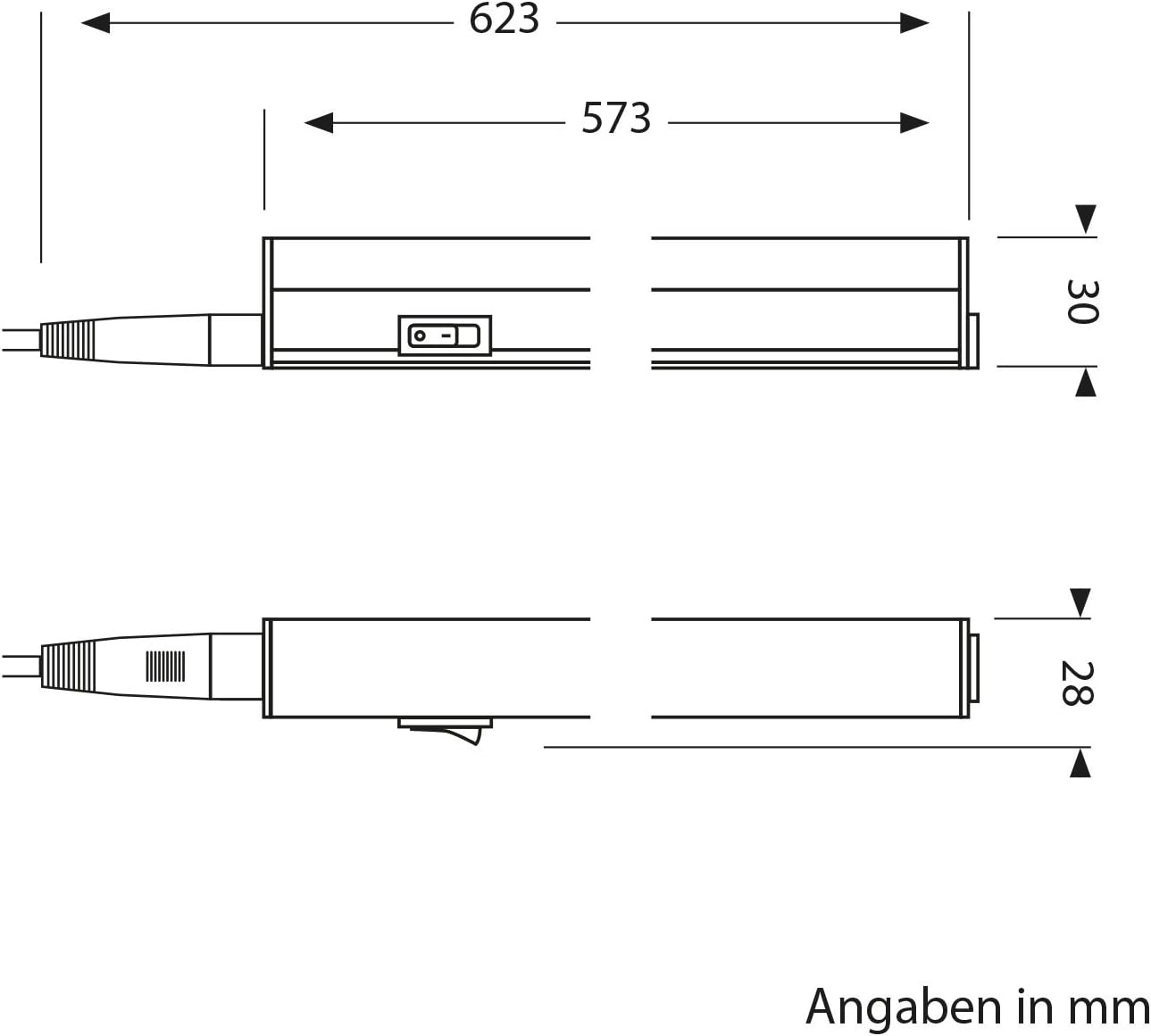 - [Versatile use] - The flat construction (573 x 30 x 28 mm) and the simple design of the under-cabinet lamp enable a wide range of applications. The light strip can be used as an under-cabinet light in the kitchen, as cabinet lighting, work light and as a workshop lamp.