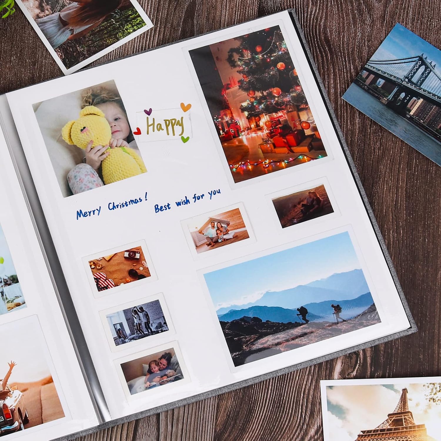 - Hold Different Size Pictures This big photo album could hold all size photos of 3x5, 4x6, 5x7 , 6x8 and 8x10, or any tickets and postcards which you want to keep