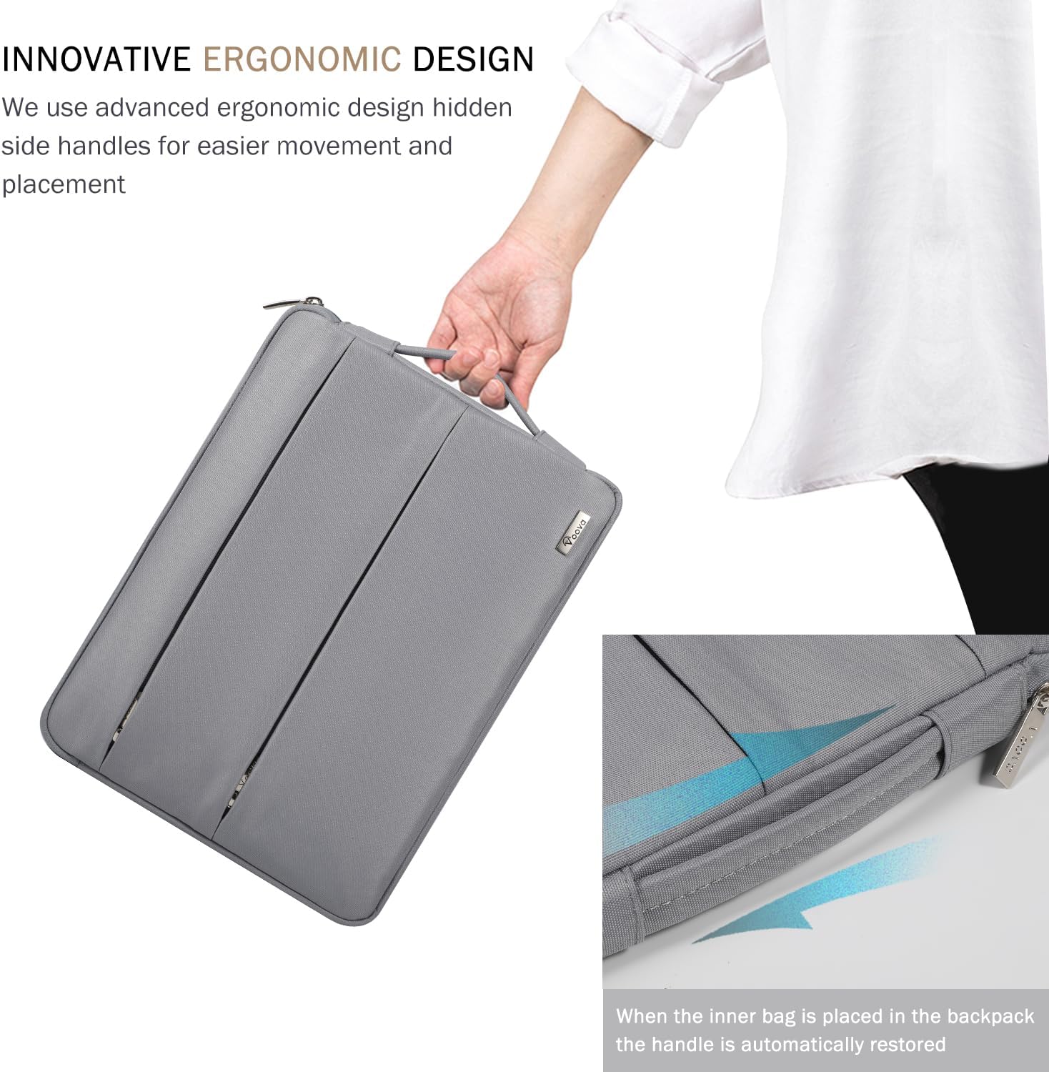 - Special Vertical Handle Design Compared to other laptop cases, this lightweight laptop sleeve is designed by vertical handle, it is easier to slide into backpack or take it out just need to open the pocket slightly. Enjoy the feeling of convenience and stylish completely.