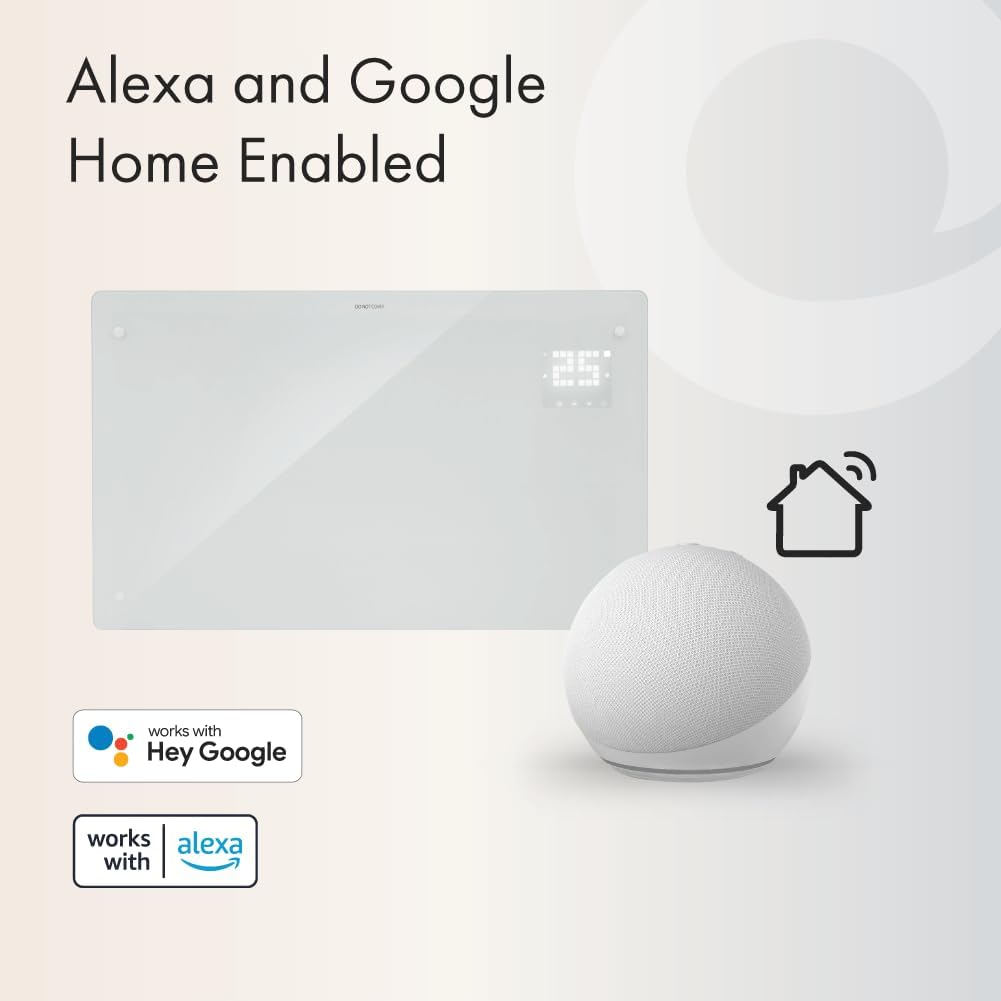 Wifi Enabled Smart Electric Glass Panel Heater 2000W | Alexa Heating Control, Open Window Detection, Wall Mounted